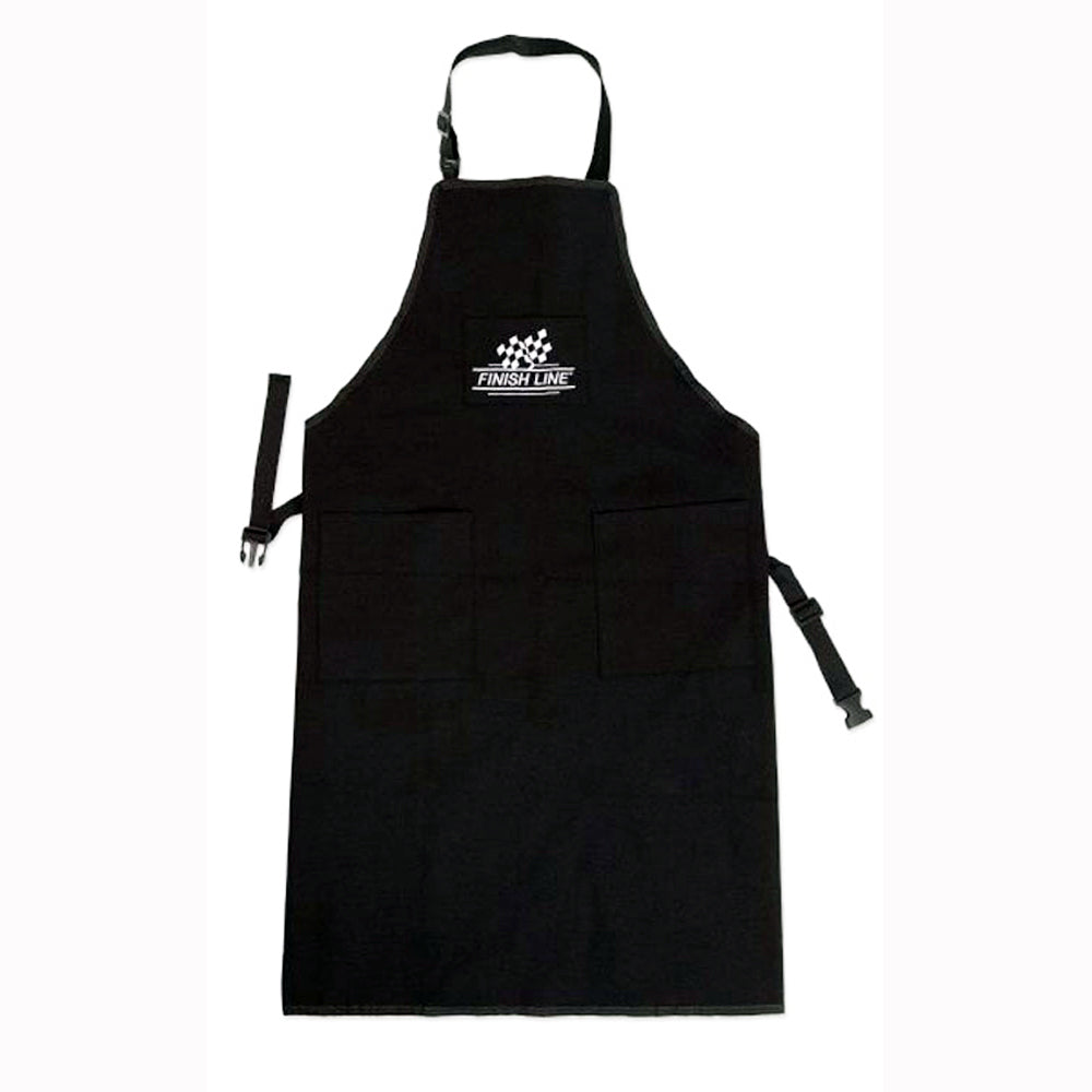 Designed by mechanics, for mechanics. Washable heavy-duty cotton. Look pro, and stay clean with the Finish Line Shop Apron. Easy-ajust neck loop and simple waist strap keep this apron tidy, and the embroidered pocket logo lets everyone know that you too are a #LubeExpert!